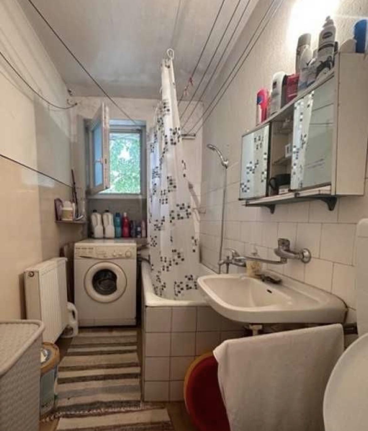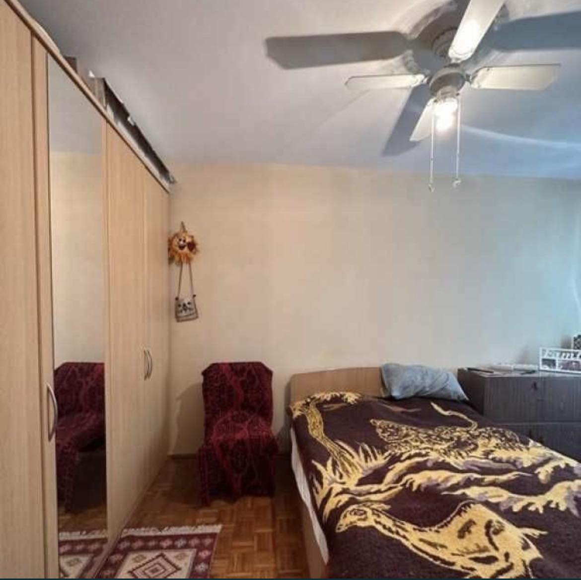 Apartamentul are balcon lung de 6m, beci propriu, dispune de usa metalica, centrala termica, geamuri termopan, aer conditionat, baia este curata fara mucegai, necesita renovare, bucătărie mare cu mobilă la comandă, cămară de alimente.
