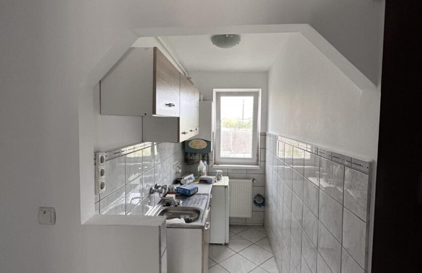 Apartament 2 camere Zona Micro 14 etaj 4 cu acoperis izolat in 2 straturi, izolat exterior cu 10cm, hol, baie, bucatarie, usa de siguranta metalica, geamuri termopan, gresie / faianta, mobilier bucatarie inclus in pret, suprafata 32 Mp.