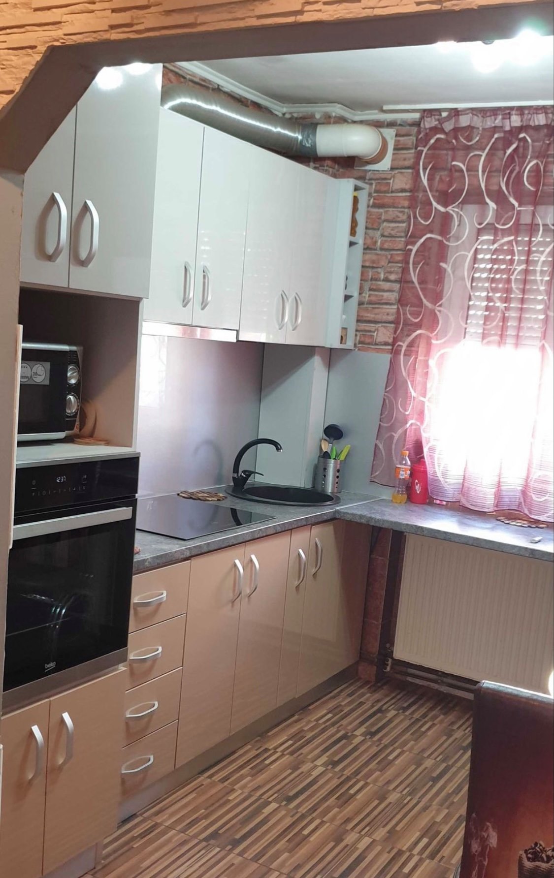 Apartament 3 camere Zona Cartier Solidaritatii parter, constructia din caramida, interfon, hol, baie (cu geam), bucatarie, izolat exterior, geamuri termopan, microcentrala, parchet laminat, beci uscat, suprafata 76 Mp, renovat (mobilier bucatarie inclus in pret – utilata).