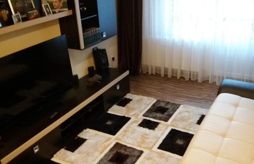 Apartament 3 camere Zona Micro 17 etaj 2, constructia din caramida, decomandat, hol, baie (cu geam), bucatarie, 2 balcoane inchise, izolat interior – exterior, geamuri termopan – plasa insecte, parchet laminat, dressing, usa de siguranta metalica, beci, suprafata 59 Mp, mobilat + utilat.