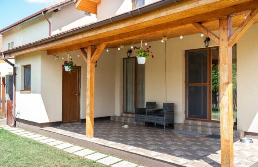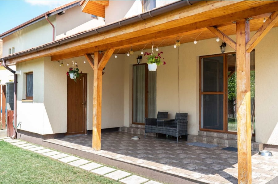 Imobilul dispune de: living + bucătarie + sufragerie, cameră technică, 2 băi, 2 dormitoare, (plus un dormitor la parter) două garderobe, terasă mare, balcon mare, curte amenajată, acces auto.
